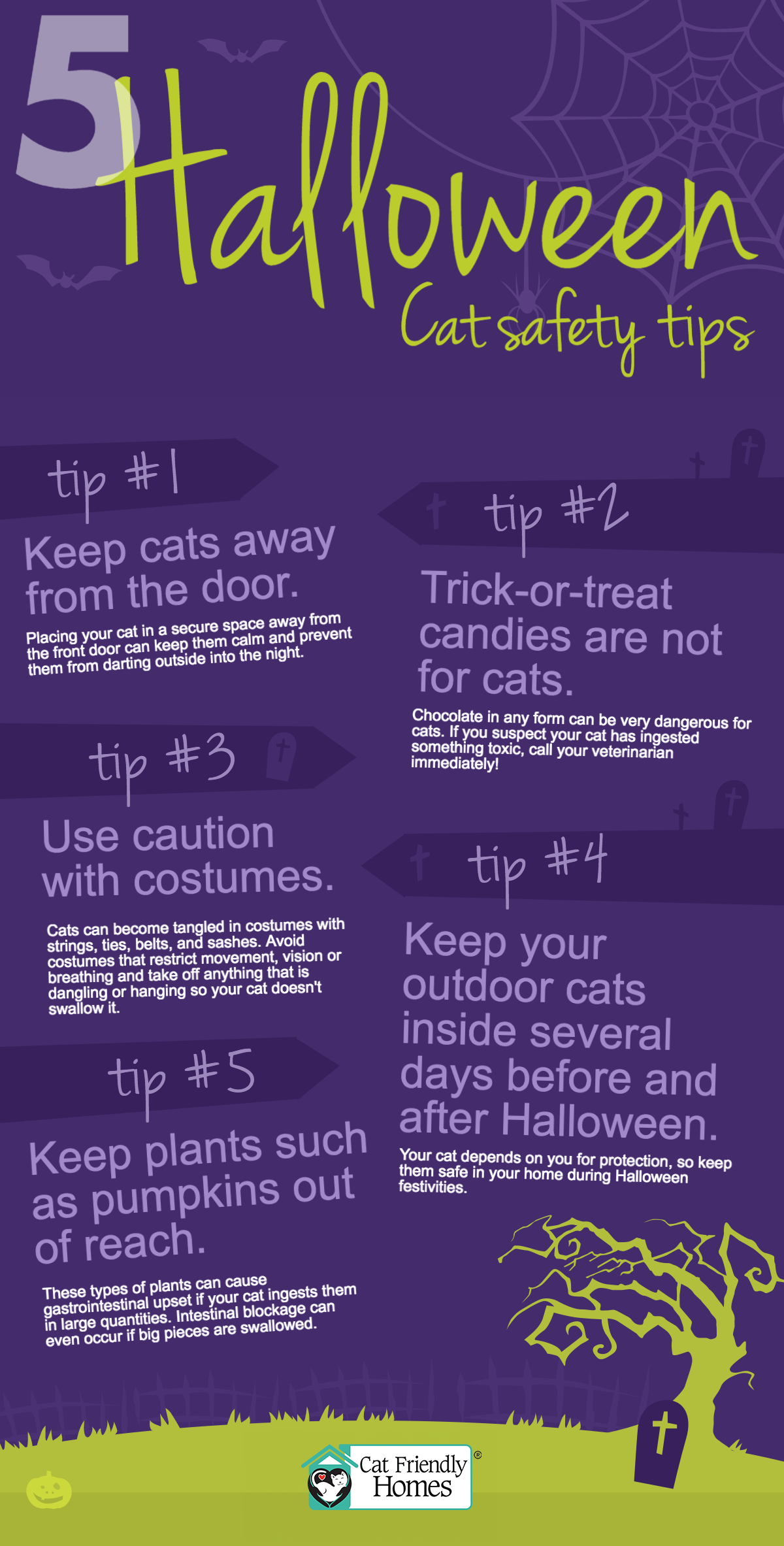 Keep your outdoor cat inside several days before and after Halloween. While black cats are commonly associated with Halloween, it is best to keep all cats away from risk of pranks or other cruelty-related incidents. Your cat depends on you for protection, so keep him safe in your home during Halloween festivities.